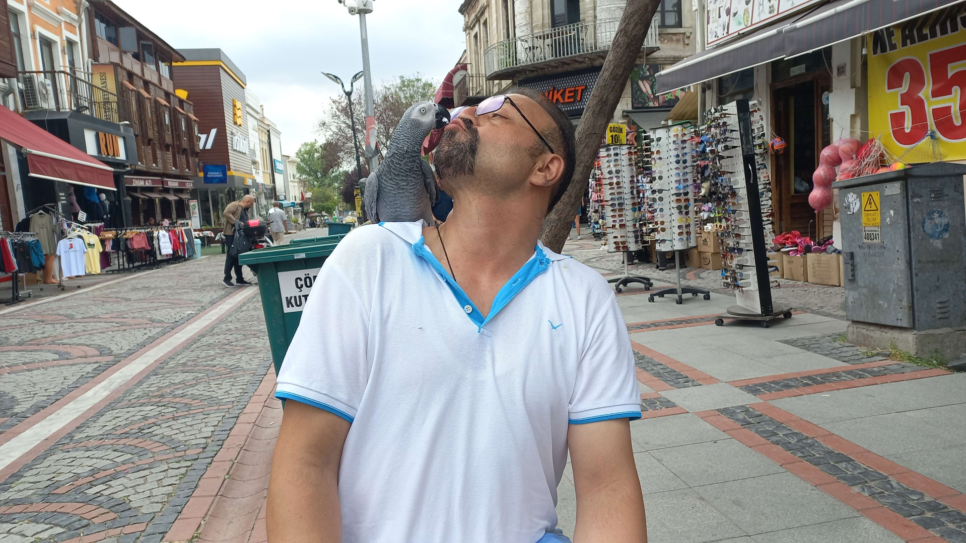Papağanına gözü gibi baktığını anlatan Özçetin, 2021'den bu yana dostluklarının sürdüğünü belirterek, "İzmir’de bir arkadaşımın tavsiyesi ile aldım. Uzun zamandan beri benimle birlikte. İki ayda bir tırnak bakımlarını da yapıyorum. Aldıktan sonra 6 ay kadar konuşamadı ama daha sonra konuşmaya başladı. Aldığından beri sokaklarda gezdiriyorum. Yemini ve suyunu koyuyoruz. Fotoğraf çektirmeyi sevmiyor. İnsanlar dürtmeye çalışınca tepki veriyor. Tabii ki de haklı, sonuçta o da bir canlı" dedi.