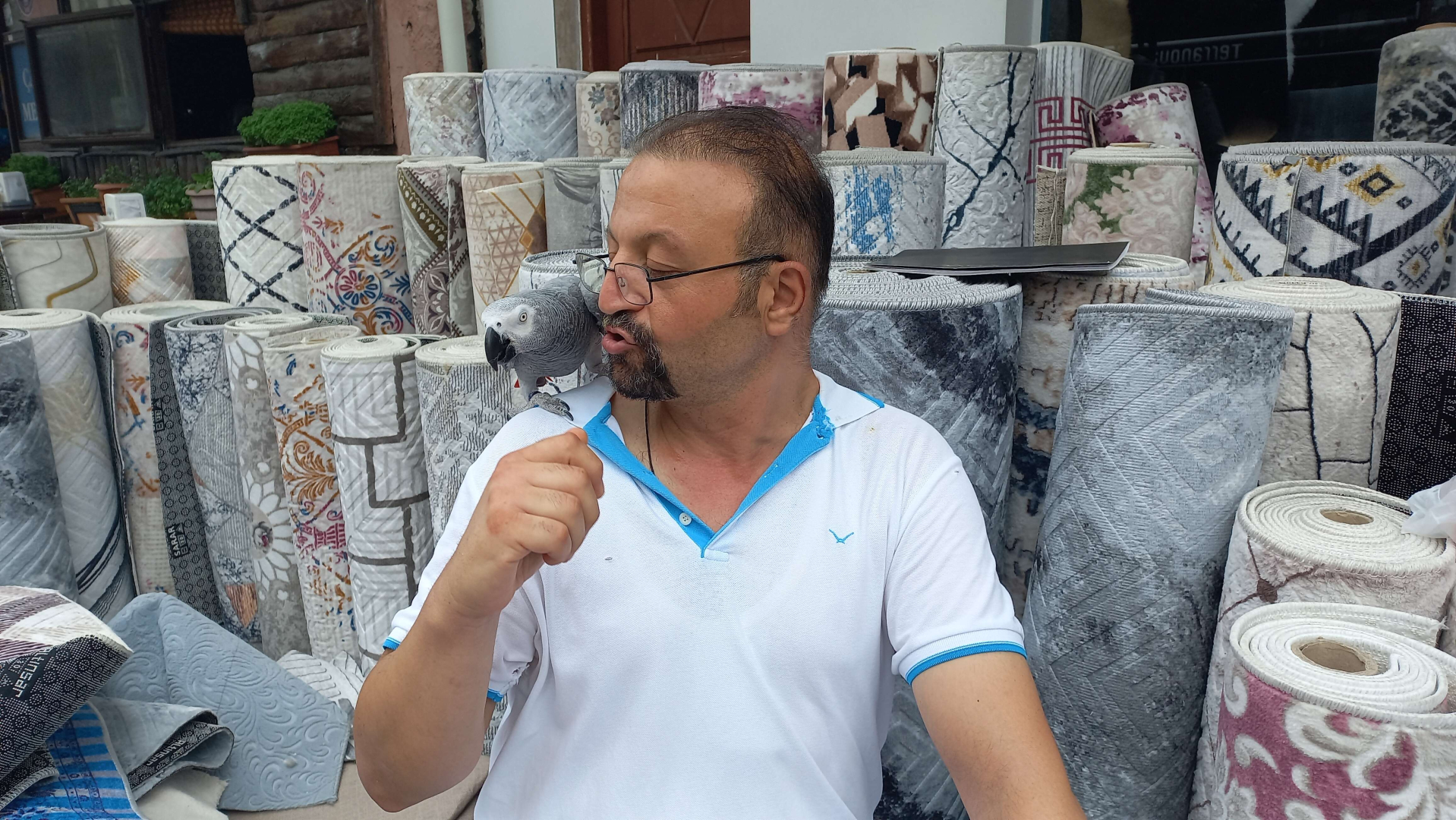Edirne'nin Kaleiçi Dilaver Bey Mahallesi'nde oturan Mustafa Turgay Özçetin, pandemi döneminde İzmir’den aldığı ve sahiplendiği papağanı sayesinde çok mutlu bir hayat yaşıyor.