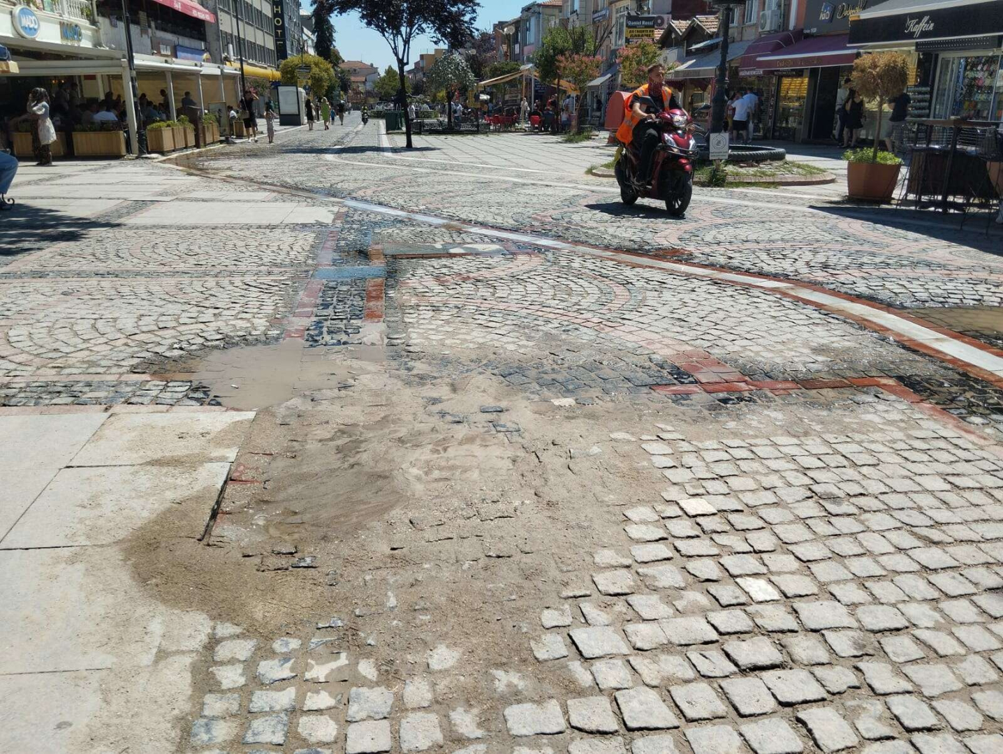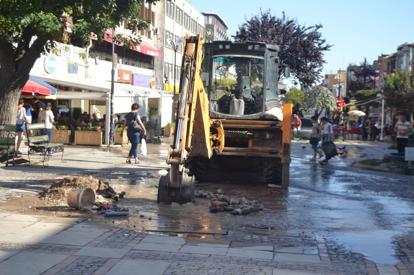 Edirne merkezde, şehrin en işlek caddesi olan Saraçlar Caddesi’nde sabah saatlerinden itibaren şebeke hattındaki patlak nedeniyle caddeye su aktı.