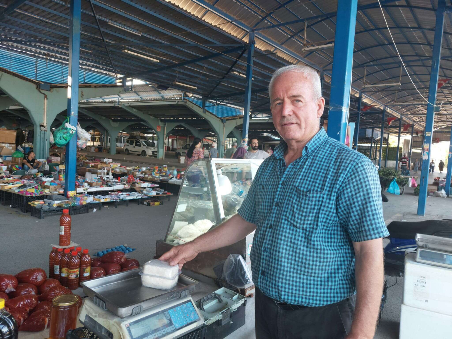 Edirne’de Pazartesi Pazarı’nda peynir ürünleri satan Hüseyin Koç üst üste gelen zamları değerlendirdi. Çiğ süt, mazot ve benzine gelen zamları değerlendiren Koç “Ben pahalı satmak istemiyorum ucuz olsun devir daim olsun” dedi.