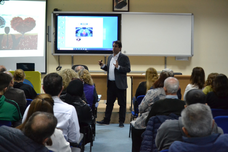 Trakya Üniversitesi Uluslararası Fizik ve Uygulamalı Matematik Araştırma Merkezi tarafından bugün düzenlenen “Kalp Hastalığı Riskim Nedir? Nasıl Önlem Alırım?” konulu seminerde, Trakya Üniversitesi Tıp Fakültesi Kardiyoloji Anabilim Dalı Başkanı Prof. Dr. Servet Altay sunum yaptı.