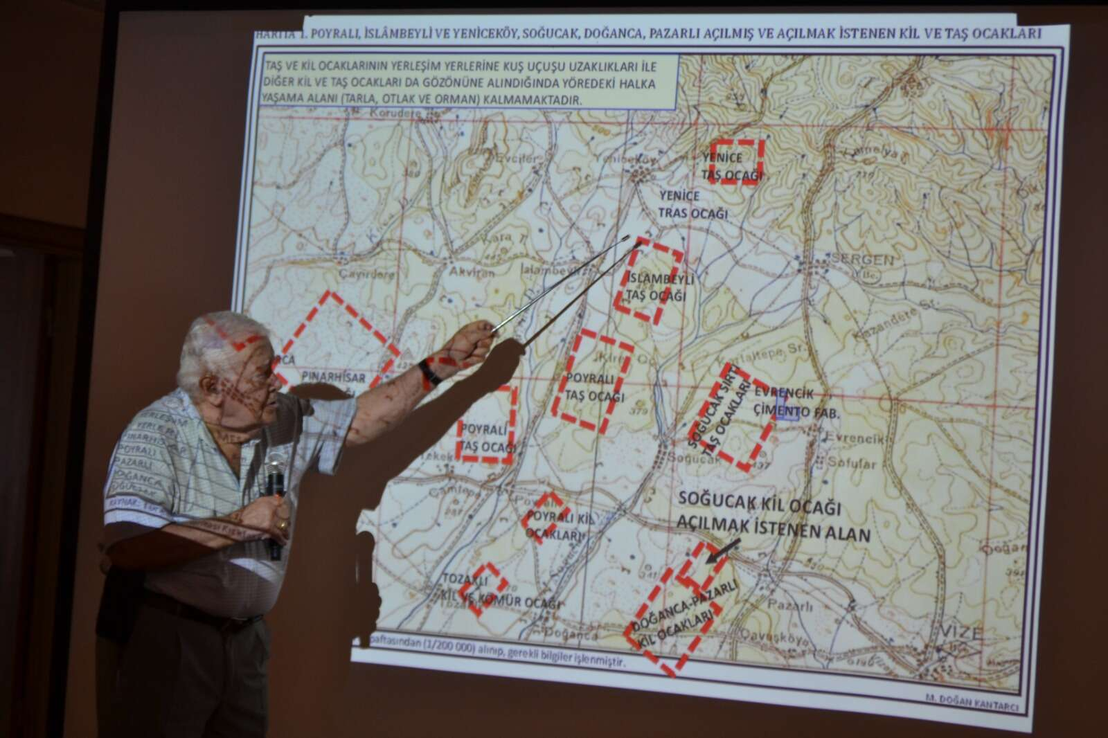 Sunumunun sonunda uyarılarda bulunan Kantarcı; “Kireç taşı olan bölgede ormanı yok ederseniz, taş ocağından sel oluşur. Kırklareli’de arkadaşlarımızın yıllardır mücadele ettiği konu budur. Biz burada yaşayacak mıyız, yoksa buradan göç edecek miyiz? Suyumuza sahip çıkmak zorundayız. Beni kireç taşı fabrikası ilgilendirmiyor. Beni aşağıdaki ekmeğini yediğim köylünün tarlası ilgilendiriyor. Biz ancak bunlarla halkımızın buradaki devamlılığını sağlayabliriz. Biz bunu sağlarsak buradaki hükümranlığımız devam eder. Yoksa gençler göçüp gider” diye konuştu.