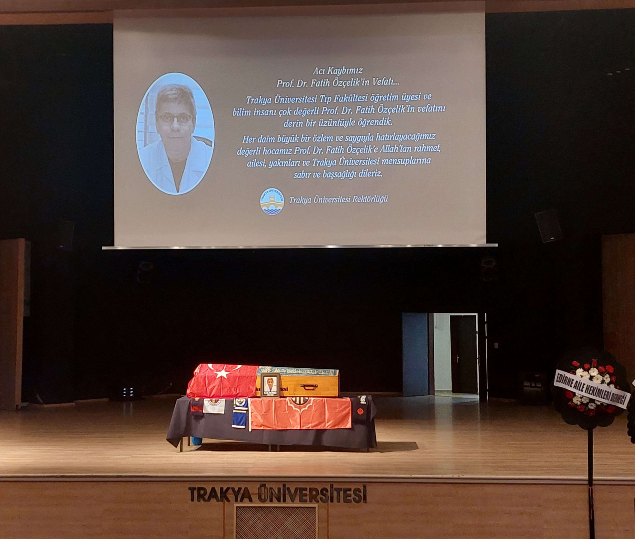 Trakya Üniversitesi (TÜ) Tıp Fakültesi öğretim üyesi Prof. Dr. Fatih Özçelik için TÜ Balkan Kongre Merkezi’nde tören yapıldı. Tören ilk olarak Prof. Dr. Fatih Özçelik’in hayatının anlatılmasıyla başladı. Daha sonra ise öğrenci ve öğretim üyelerinin anılarını anlatmasıyla devam etti.
