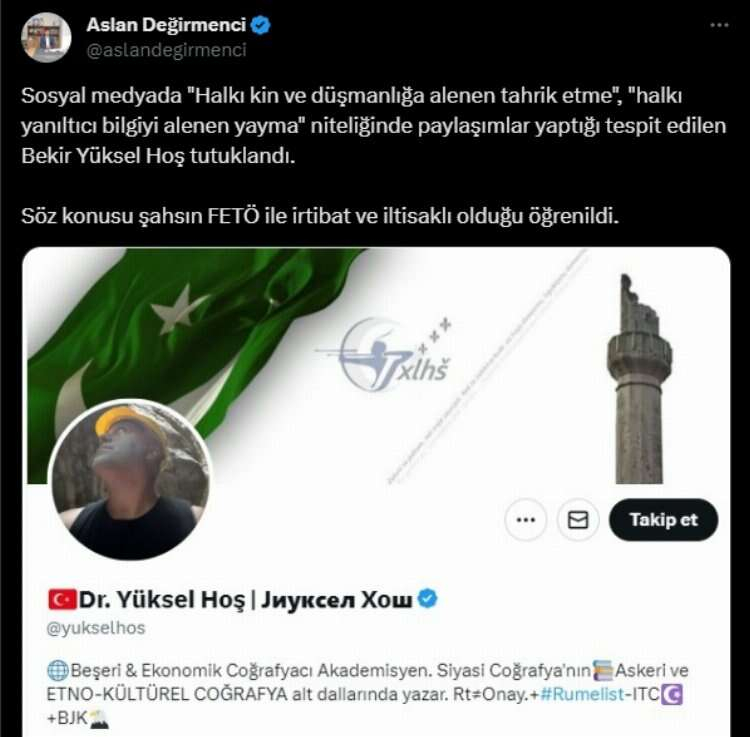 Tabakoğlu’nun açıklamasından önce sosyal medya platformu X’te birçok kullanıcı tarafından yapılan paylaşımlarda Hoş’un tutuklandığı iddia edilmişti. Cumhurbaşkanlığı İletişim Başkanlığı Dijital Medya Koordinatörü Aslan Değirmenci de yaptığı paylaşımda; “Sosyal medyada ‘Halkı kin ve düşmanlığa alenen tahrik etme’, ‘Halkı yanıltıcı bilgiyi alenen yayma’ niteliğinde paylaşımlar yaptığı tespit edilen Bekir Yüksel Hoş tutuklandı. Söz konusu şahsın FETÖ ile irtibat ve iltisaklı olduğu öğrenildi” ifadelerini kullanmıştı.