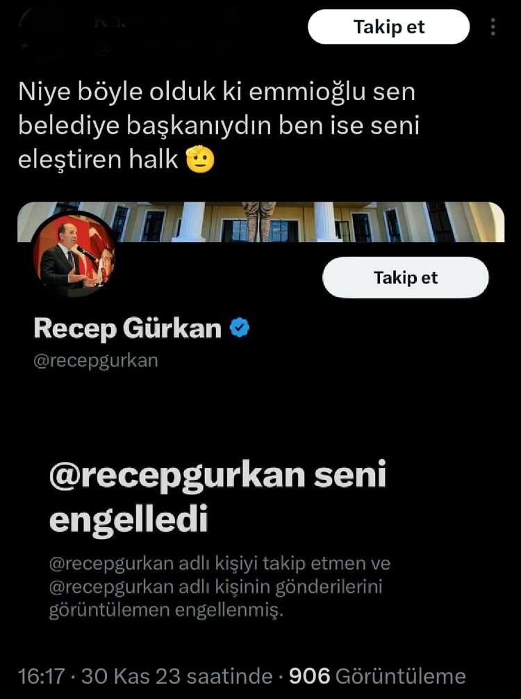 Yaptığı yorumdan dolayı engellenen bir kullanıcı ise başka bir hesaptan giriş yaparak engellenen hesabının ekran görüntüsünü paylaşırken; “Niye böyle olduk ki emmioğlu sen belediye başkanıydın ben ise seni eleştiren halk” şeklinde yazdı. Bir kullanıcı da yayını seçim konuşması olarak yorumlayarak “Eee sular ne zaman gelecek??? Seçim konuşmasını başka zaman yapın. Çoluk çocuk perişan olduk evlerde” dedi.