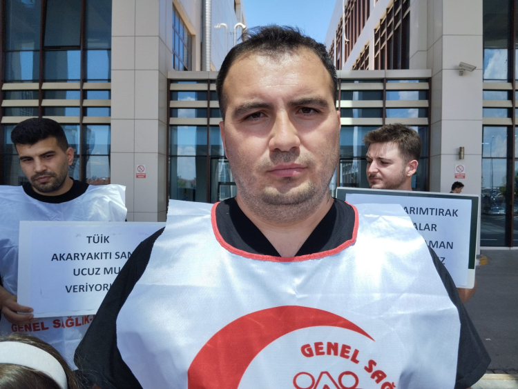 Kamuda çalışan sağlık ve sosyal hizmet çalışanlarının TÜİK’in açıkladığı rakamları kabul etmediği belirtilen açıklamayı, Genel Sağlık İş Sendikası Edirne Şube Başkanı Özcan Arslan okudu. Hazine ve Maliye Bakanı Mehmet Şimşek’in bu günkü tablonun sorumlularından olduğu söylenen açıklamada; “Ülkemizdeki ağır ekonomik kriz koşulları günden güne ağırlaşmaktadır. TÜİK enflasyonu gerçekte olduğundan daha düşük göstermeye devam etmektedir. Acı gerçek ise tepeden söylenen yalanlarla bastırılmaya çalışılmaktadır. İktidar ve TÜİK eliyle milyonların boğazı sıkılmakta adeta nefessiz bırakılmaktadır. AKP iktidarında uzun yıllar görev yapan Hazine ve Maliye Bakanı Mehmet Şimşek, bugünkü tablonun sorumlularından biridir. Bugün kamu harcamaları adı altında yurttaşlara pazarlanan tasarruf genelgesi göz boyamaktan öteye gitmemektedir. Ülke kaynaklarını dev holdinglere, teşviklerle sermayeye ve vergi sıfırlamalarıyla yandaş firmalara aktaranlar; krizin acı faturasını asgari ücretliye, esnafa, kamu emekçisine, emekliye ve dar gelirliye ödetmektedirler. 7’nci Dönem Toplu Sözleşmesi görüşmelerinde AKP iktidarının yandaşı kamu emekçisini masada satan yandaş konfederasyon yüzünden, 2024 yılı ilk altı ay için yüzde 15, ikinci altı ay için yüzde 10, 2025 yılı için ise ilk altı ay için yüzde 6, ikinci altı ay için yüzde 5 zam kabul edilmiş ve çalışanlar ağır ve zorlu yaşama mahkum edilmiştir. O gün memur ve memur emeklisinin insan onuruna yaraşır adil ücret hakkı göz göre göre gasp edilmişti. Ne yazık ki bugün de kamu çalışanlarına zam olarak sunulan, oranlar hiçbir yarasına merhem olmayacaktır. Bugün açıklanan oranlarla tüm halkımız enflasyona yenik düşmüştür. Bir kez daha aynı tablo yaşanmış kamu çalışanları ve milyonlarca çalışan enflasyona ezdirilmiştir” ifadelerine yer verildi.