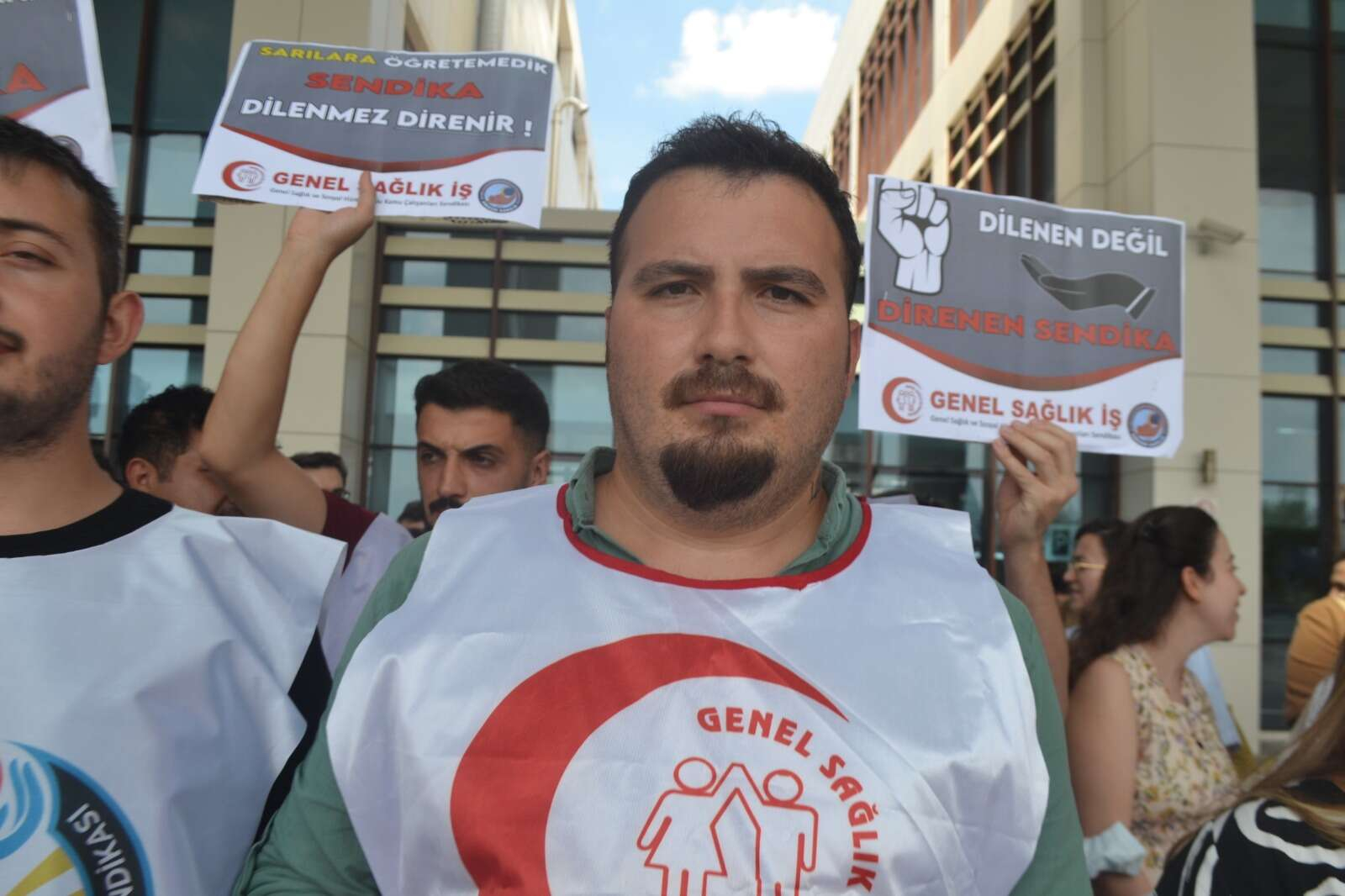 Edirne Sultan Birinci Murat Devlet Hastanesi önünde toplanan platform üyeleri ortak basın açıklaması yaparak toplu sözleşme taleplerini duyurdular. Sağlıkta Şiddet, Mali Haklar, Özlük Hakları, Çalışma Koşulları ve Liyakat ana başlıklarından oluşan 25 maddelik toplu sözleşme talebinden oluşan açıklamayı Genel Sağlık İş Sendikası Edirne Şube Başkanı Özcan Arslan okudu. Arslan’ın okuduğu açıklamada, “Toplu sözleşme taleplerimizi belirleyerek, platformun büyük çoğunluğunun katılımıyla 1-2 Ağustos’ta ülke genelinde iş bırakma kararı aldık. Çünkü ölüyoruz,öldürülüyoruz, ekonomik olarak açlık sınırındayız, tükeniyoruz. Tırnak makasıyla AVM’lere dahi girilemeyen bir zamanda, silahla polikliniğe girip sağa sola ateş edebilen kişilerle iç içeyiz. Şiddetin gölgesinde hizmet üretmeye çalışırken, her an bu silahtan çıkan bir kurşunla, hatta başımıza indirilen bir oksijen tüpüyle, gelecek bir bıçak darbesiyle ölebiliriz. Şiddeti engellemek için sadece kanunların yeterli olmayacağını biliyoruz.