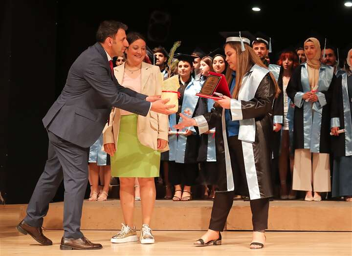 Törende açılış konuşmalarının ardından Sağlık Hizmetleri Meslek Yüksekokulunu derece ile bitiren öğrencilere plaket verildi. Plaket töreninin ardından mezun olan öğrencilere mezuniyet belgelerinin verilmesinin ve meslek andının okunması ile tören son buldu.