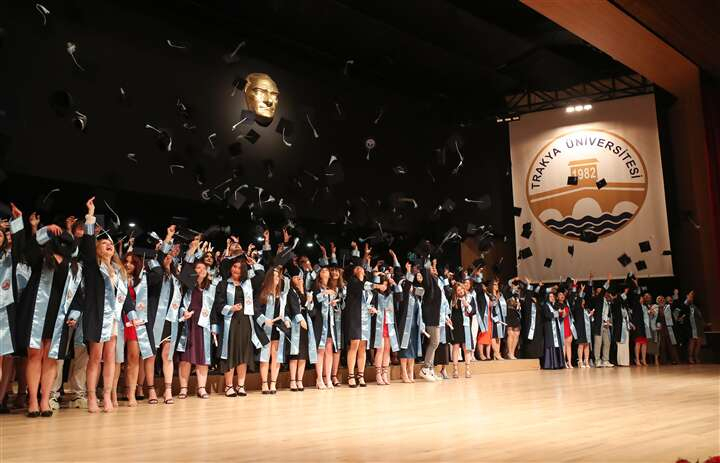 Trakya Üniversitesi Sağlık Hizmetleri Meslek Yüksekokulu (MYO) Mezuniyet Töreni büyük bir coşkuyla gerçekleştirildi. Balkan Kongre Merkezi’nde düzenlenen törende Tıbbi Laboratuvar Teknikleri, Ortopedik Protez ve Ortez, Fizyoterapi, Tıbbi Dokümantasyon ve Sekreterlik, Ameliyathane Hizmetleri, Anestezi, İlk ve Acil Yardım, Tıbbi Görüntüleme Teknikleri, Patoloji Laboratuvar Teknikleri, Radyoterapi, Odyometri, Elektronörofizyoloji ile Ağız ve Diş Sağlığı Teknikleri bölümlerinden mezun öğrenciler diplomalarını aldı. Öğrenciler, tören sonunda hep birlikte kep atarak mezuniyet coşkusu yaşadı.