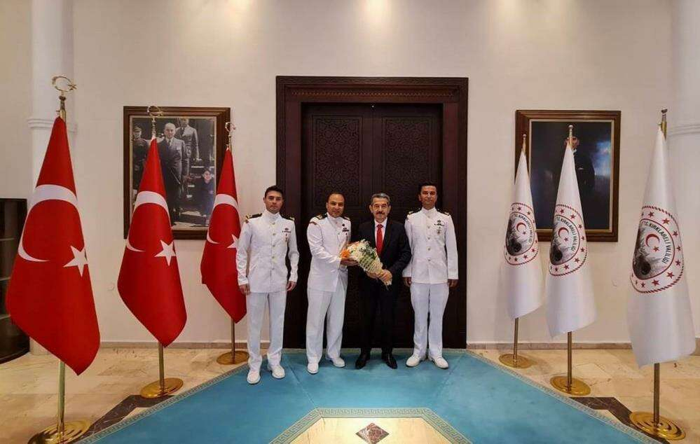 Sahil Güvenlik Komutanı Yüzbaşı Gökhan Fidan, Teğmenler Cemal Ayık ve Efe Başçay, Kırklareli Valisi Birol Ekici'yi ziyaret etti.
