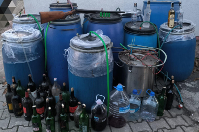 Belirlenen iki adrese operasyon düzenleyen ekipler, bin 350 litre sahte içki ile sahte içki yapımında kullanılan düzenek, ruhsatsız av tüfeği ve fişek ele geçirdi.