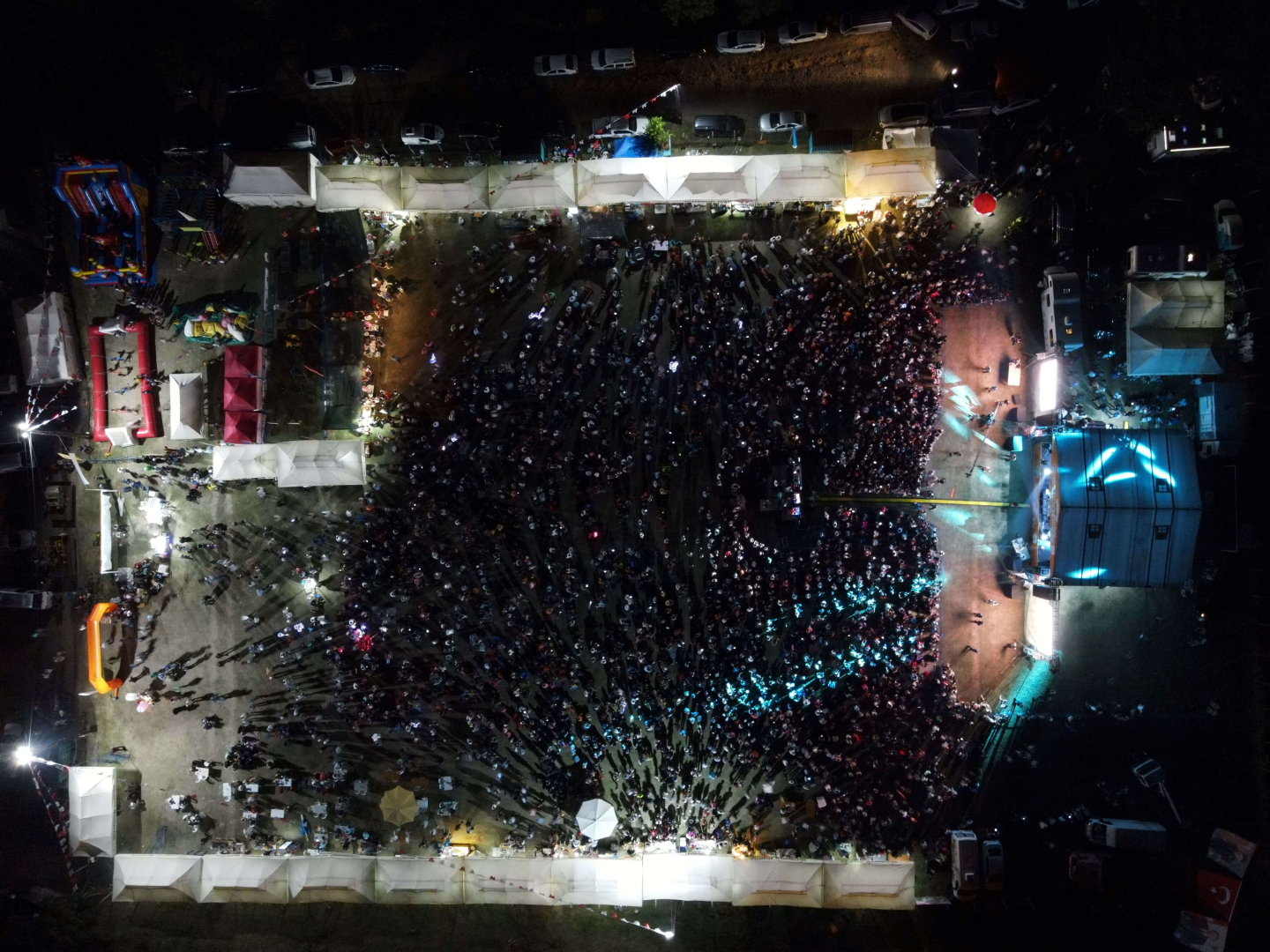 Binlerce kişinin katıldığı konser dron ile havadan görüntülendi.