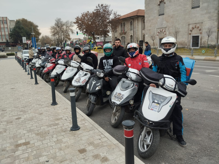 Edirne Moto Kuryeler Derneği üyeleri, 17 Kasım tarihinde harçlığını çıkarmak için kuryelik yapan üniversite öğrencisi Eren Ö.’nün, F. K. isimli müşteri tarafından bıçaklı saldırıya uğramasını kınayan bir basın açıklaması yaptılar.
