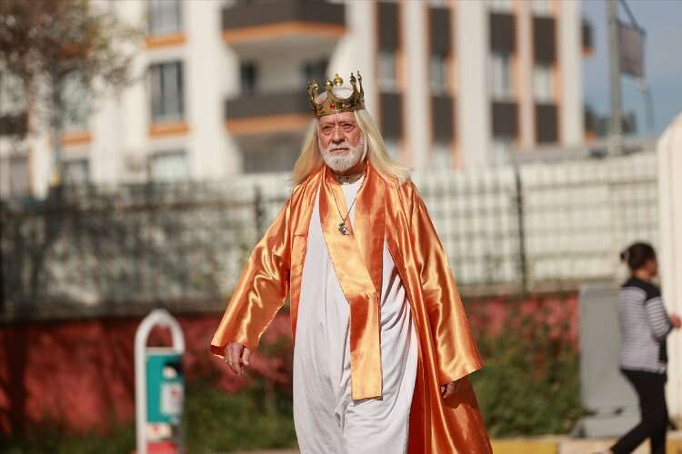 Kral kıyafeti giymesi ve taç takarak kentte dolaşması sebebiyle "Adana Kralı" olarak bilinen 69 yaşındaki Hüseyin Şen de merkez Sarıçam ilçesi Çınarlı Mahallesi'ndeki Bilge Kağan Ortaokulunda oyunu kullandı.