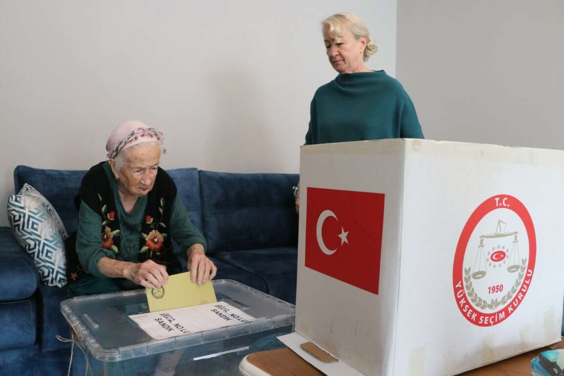 İl Seçim Kurulu görevlileri, seyyar sandık başvurusu yapan seçmenlerin evlerine taşınabilir seçim sandığını götürdü.