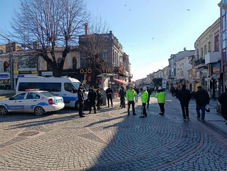 Edirne İl Emniyet Müdürlüğü ekipleri, kentin trafiğe kapalı olan Saraçlar Caddesi’nde uygulama gerçekleştirdiler.