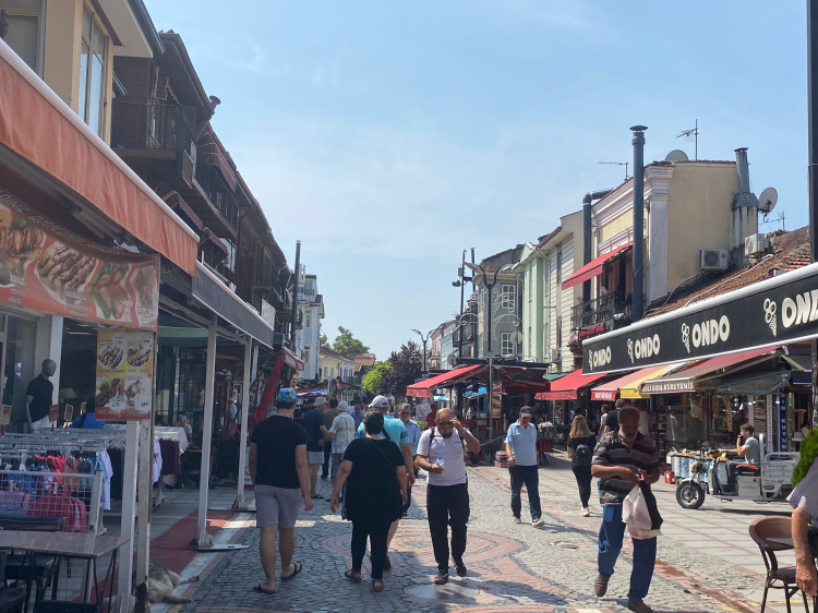 Edirne'de bulunan trafiğe kapalı Saraçlar Caddesi, sabahın erken saatlerinden itibaren yoğun bir kalabalıkla doldu taştı. Güneşin doğmasıyla birlikte şehir merkezine akın eden vatandaşlar, günlük işlerini halletmek ve alışveriş yapmak için caddeye yöneldi.