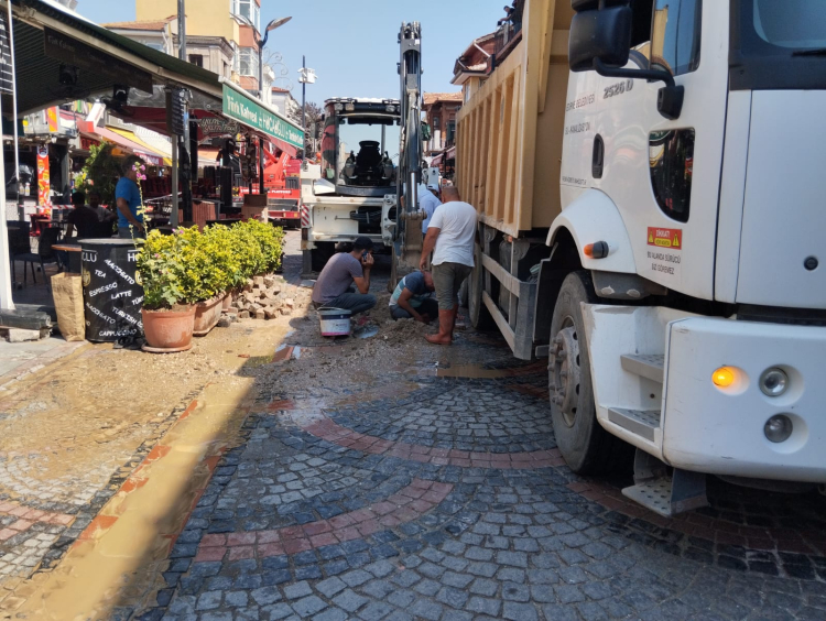 Edirne Belediyesi ekipleri, Saraçlar Caddesi’nin Bat Pazarı bölgesinde içme suyu hattında oluşan arızanın onarımına başladılar.