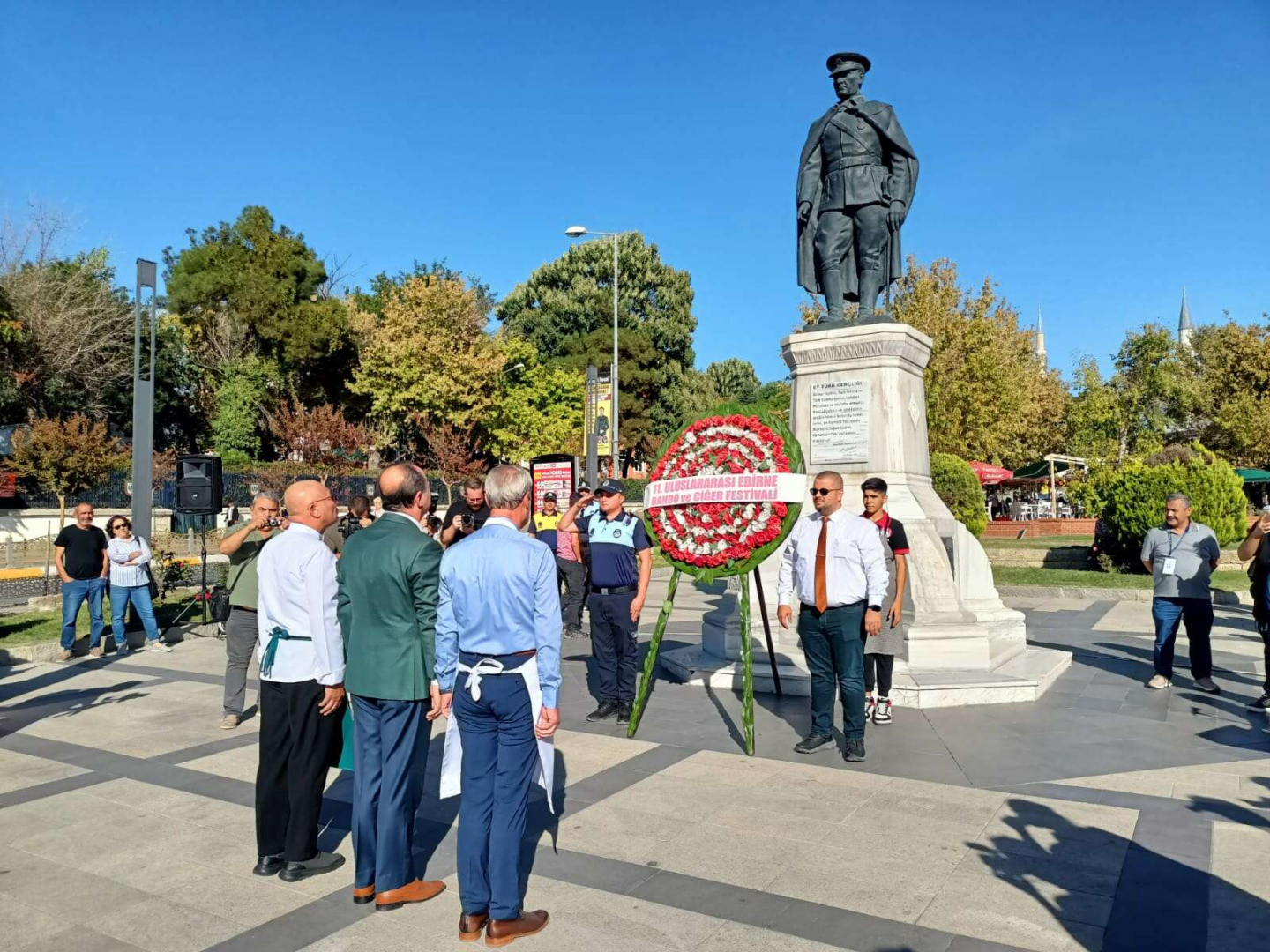 Atatürk anıtında düzenlenen törene; Edirne Belediye Başkanı Recep Gürkan, Edirne İl Genel Meclisi Başkanı Mehmet Geçmiş, Belediye Başkan Yardımcıları, siyasi parti temsilcileri, Edirne Tava Ciğeri ustaları ve vatandaşlar katıldılar. Belediye Başkanı Gürkan ve Tava Ciğeri ustalarının Atatürk anıtına çelenk sunması ile başlayan törende; Türkiye Cumhuriyeti’nin kurucusu Mustafa Kemal Atatürk, silah arkadaşları ve tüm şehitler anısına bir dakikalık saygı duruşu ve İstiklal Marşı okundu.