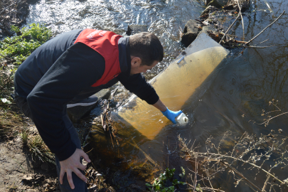 İlçe Çevre, Şehircilik ve İklim Değişikliği Müdürlüğü ile İlçe Tarım ve Orman Müdürlüğü ekipleri, derede incelemede bulunarak sudan numune aldı.