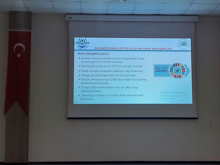 Makine Mühendisi, Edirne Valiliği İl Enerji Yöneticisi Gülseren Şare, Trakya Üniversitesi Eğitim Bilimleri Fakültesi’nde öğrencilerle bir araya geldi. Öğrencilere enerji verimliliği ve karbon ayak izi anlatan Şare, “Türkiye 2053 yılında, dünya ise 2050 yılında sıfır karbon hedefini koydu” dedi.