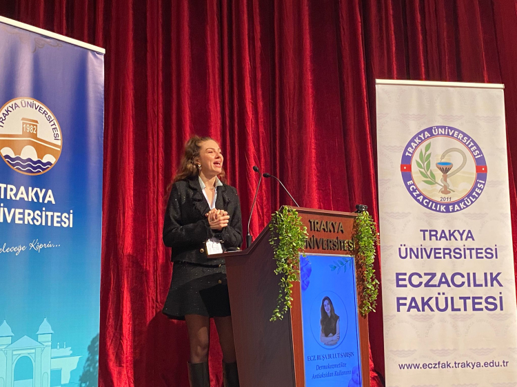 Trakya Üniversitesi (TÜ) Sağlık Kültür ve Spor Daire Başkanlığı ile TÜ Eczacılık Öğrencileri Birliği’nin ev sahipliğinde düzenlenen “Dermokozmetik Zirvesi” yoğun katılımla devam ediyor. Zirvenin dikkat çeken konuşmacılarından biri olan Eczacı Ruşa Bulut Sarışın, dermokozmetikte antioksidan kullanımı üzerine yaptığı sunumla ilgi gördü.