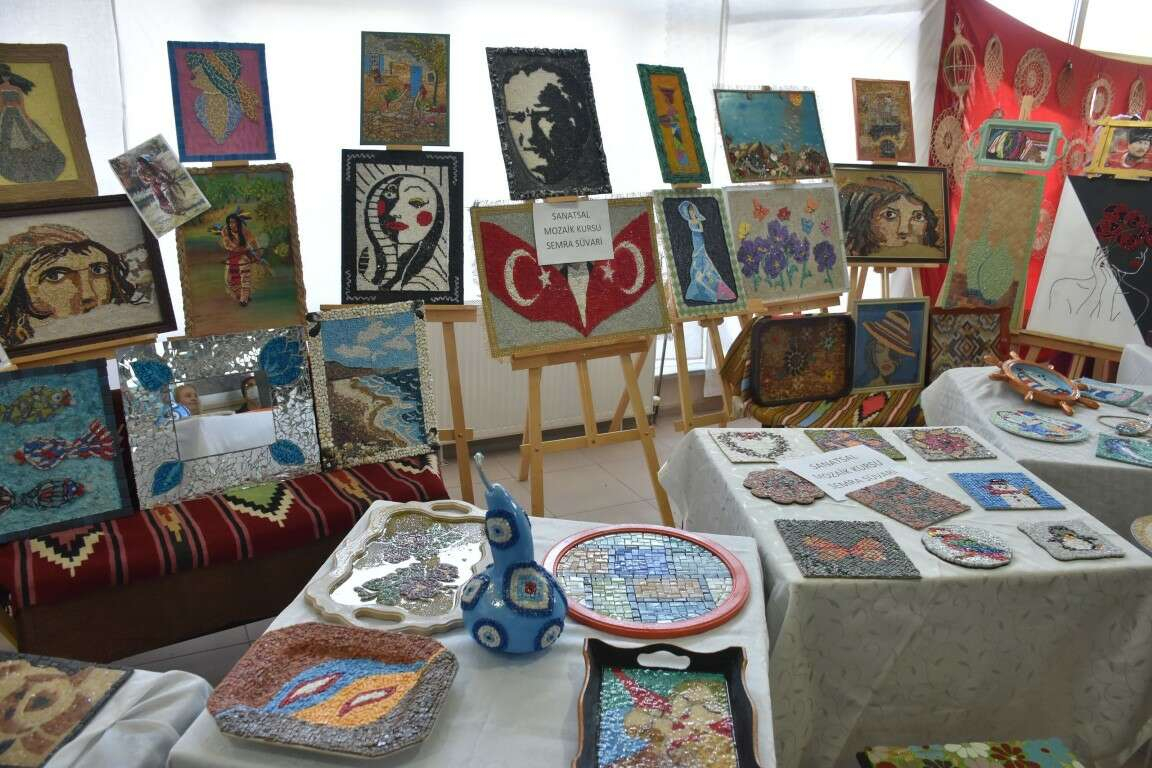 Daha sonra katılımcılar kursiyerlerin el emeği ürünleri inceledi.