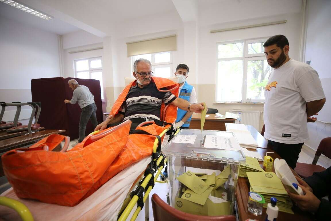 Ambulansla oy kullanacağı Türkiye Odalar ve Borsalar Birliği Sosyal Bilimler Lisesine götürülen Yürük, sağlık personeli tarafından sandığının bulunduğu kata sedyeyle çıkarıldı.
