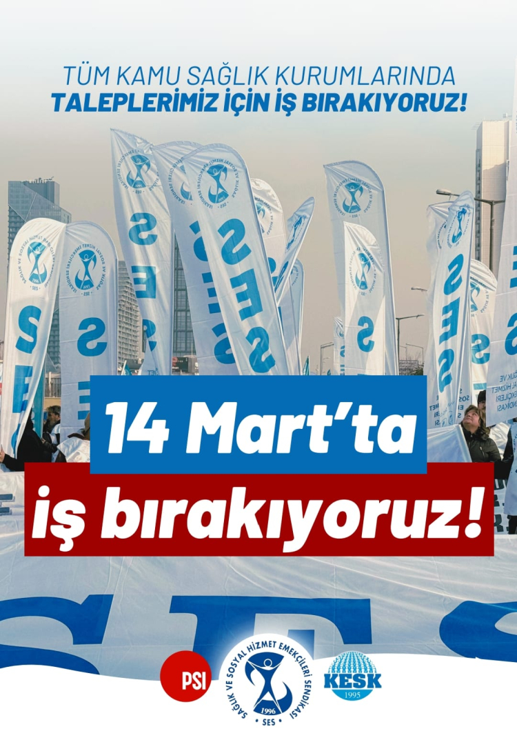 Sağlık Emekçileri Sendikası (SES) yarın kutlanacak olan Tıp Bayramında bütün sağlık kuruluşlarında iş bırakacaklarını duyurdu. 14 Mart’ı bayrama dönüştürmek amacında olduklarını belirten sendika “Sağlık hizmetinin metalaştırılarak alınıp satılan bir mala dönüştürülmesine, hastaya müşteri denilmesine ve sağlık bütçesinin özel sermayeye akıtılmasına, sağlık kurumlarının şirketleşmesine, halkın sağlığının paraya tahvil edilmesine, performans – güvencesizlik - şiddet kıskacı ile faturanın sağlık emekçilerine kesilmesine, Tıp Bayramının 106. Yıldönümünde de 14 Mart haftasında mücadeleye devam ediyoruz” açıklaması yaptı.