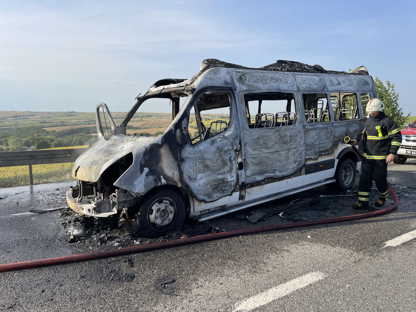 Alınan bilgiye göre, B.K. yönetimindeki 59 *** 325 plakalı minibüs Tekirdağ-Malkara karayolu Beşiktepe Mahallesi kavşağında seyir halindeyken alev aldı.