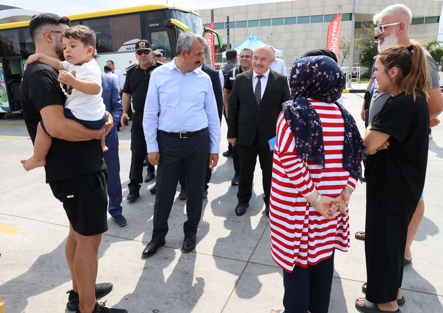 Sezer, tatillerinin ardından yaşadıkları ülkelere dönüş yolunda olan gurbetçilerle de sohbet etti.