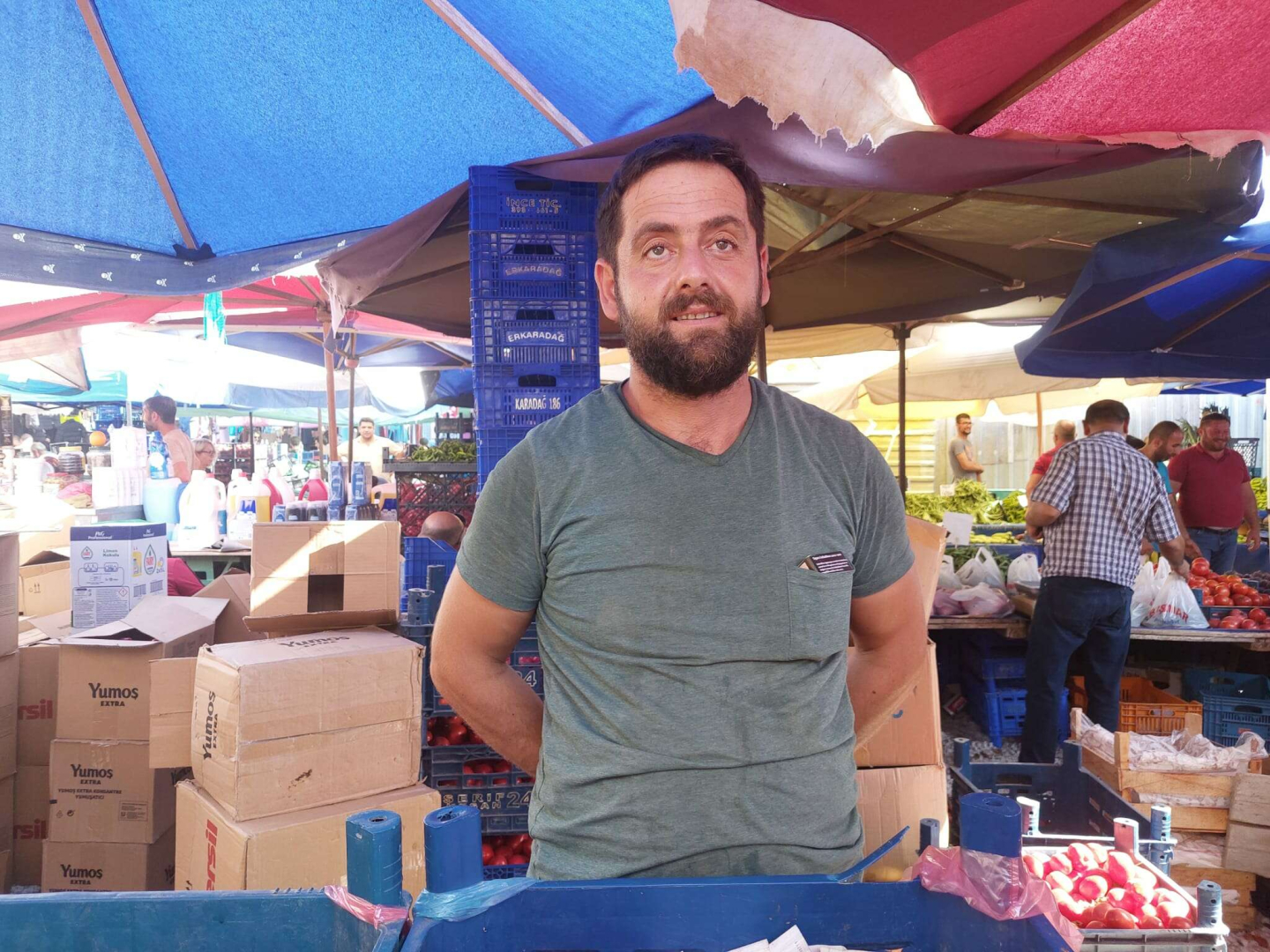Edirne’de Cumartesi Pazarı esnaflarından Faruk Ule, Bulgar ve Yunan turistlerinin Cumartesi Pazarına ilgisinin yoğun olduğunu belirterek “Bugün hava çok sıcak ama yine de Bulgar ve Yunan turistlerinden talep fazla” dedi.