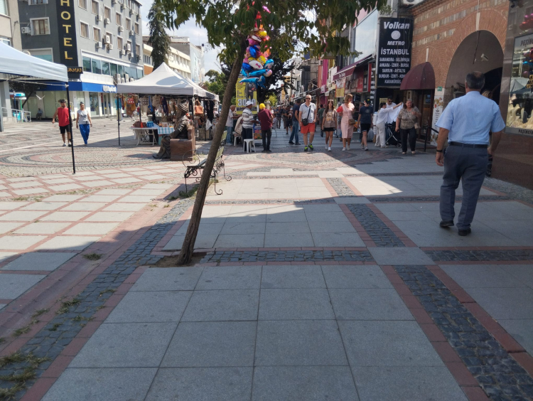 Kentte vatandaşlar ile yurt içi ve yurt dışından gelen turistlerin en çok tercih ettiği alanlardan biri olan Saraçlar Caddesi’nde bugün hava sıcaklığı 37,7 dereceyi buldu. Hava sıcaklığının etkisiyle caddede bulunanlar, gölge alanlardan yürümeyi tercih ederken; güneşin dik açıyla vurduğu bölümler ise adeta boş kaldı.