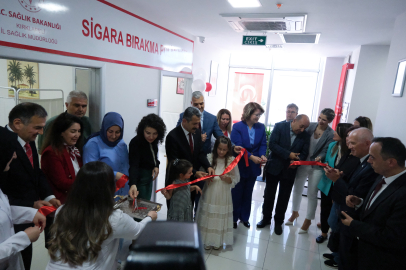 Konuşmaların ardından Vali Ekici ile geçmişte tütün bağımlısı 9 kişi polikliniğin açılış kurdelesini kesti.
