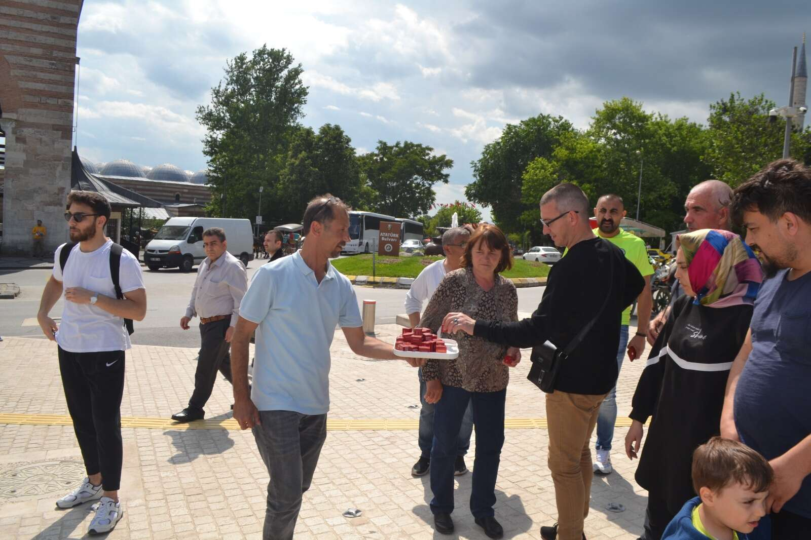 Bademli Kurabiye yapımı şef Muhammet Çetinkaya tarafından katılımcılara ve vatandaşlara gösterildikten sonra, çevredeki yerli ve yabancı turistlere önceden hazırlanmış kurabiyeler ikram edildi.