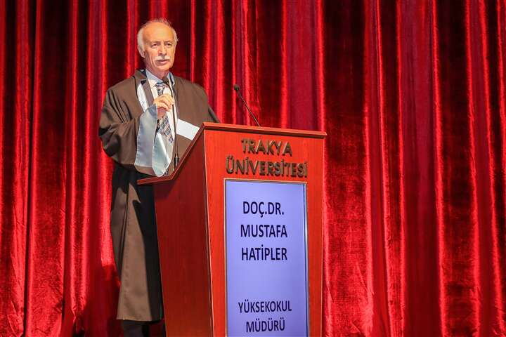 Konuşmasında ailelere ve öğrencilere seslenen Edirne Sosyal Bilimler Meslek Yüksekokulu Müdürü Doç. Dr. Mustafa Hatipler “Çocuklarınız bizim için kutsal bir emanet oldu. Biz onları, hem sizin emanetiniz hem de milletimizin emaneti olarak kabul ettik. Bugün öğrencilerimizi, sizlere veriyoruz. Yani bir anlamda emaneti asıl sahibine teslim ediyoruz. Bu emanet, bundan böyle, başta siz aileleri olmak üzere, ülkemiz ve milletimiz için durmadan, yorulmadan çalışacak ve bizlere gurur duyacağımız anlar yaşatacaktır. Bundan sonra bizler de onların başarısıyla heyecanlanacak ve onların başarısıyla onur duyacağız. Gençler; bu uzun hayat yolculuğunuzun bundan sonrasında, yani bugünde sonra, hayat geminizin kaptanı olarak yol alacaksınız. Bu uzun yolculuğunuzun her anında, sevgi, saygı, sorumluluk, samimiyet, sadakat, sorgulamak ve gayretle çalışmak rehberiniz olsun. Bundan sonraki hayat yolculuğunuzda, her şey gönlünüzce olsun.” dedi.