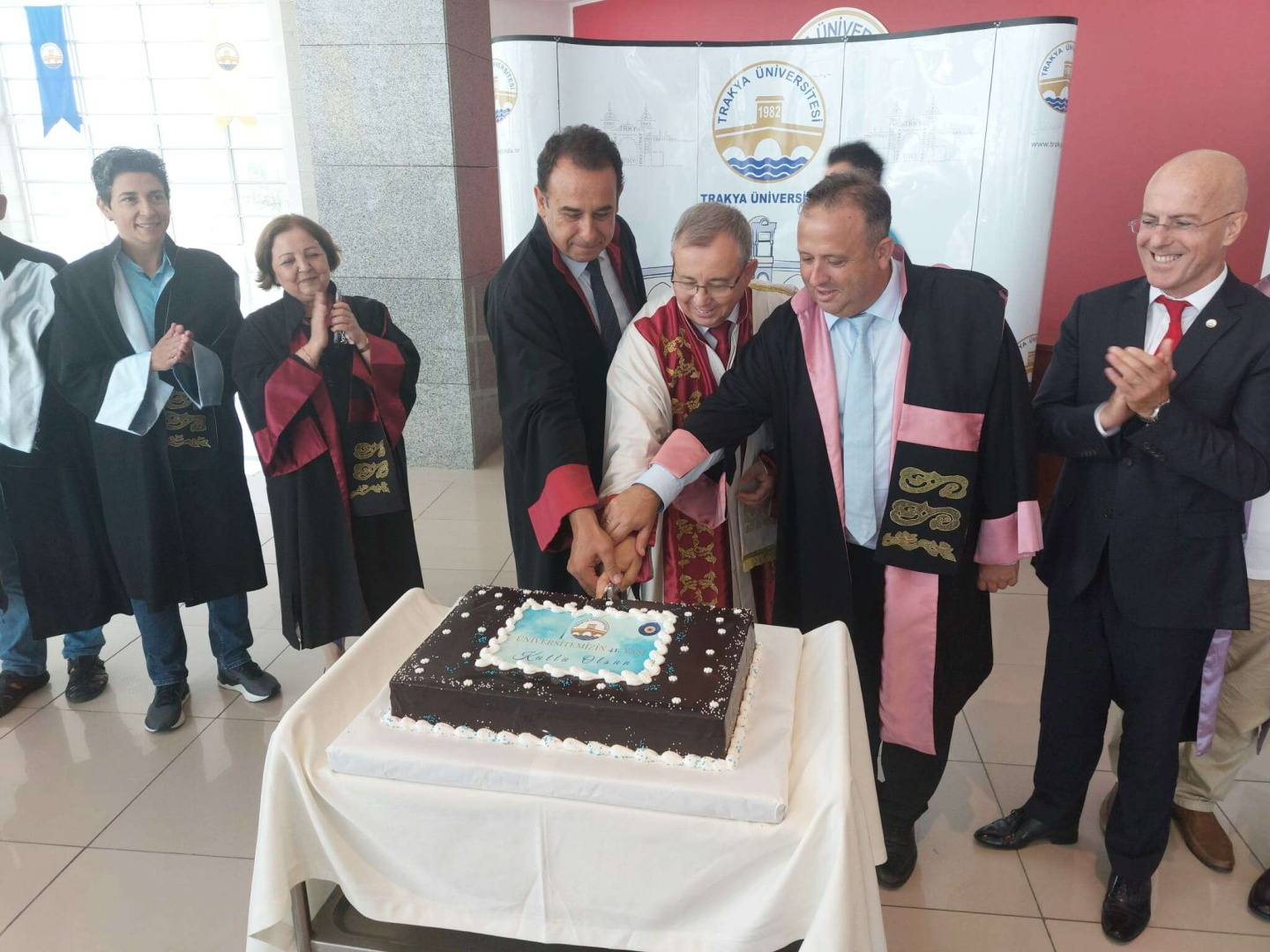 Edirne’de Trakya Üniversitesi 41’inci kuruluş yıl dönümü senato toplantısı gerçekleştirildi. Programa Trakya Üniversitesi Rektör Prof. Dr. Erhan Tabakoğlu, senato üyelerine üniversitenin kuruluşu hakkında bilgiler verdi. Program Trakya Üniversitesi Balkan Senfoni Orkestrası’nın gösterisiyle başladı. Ardından Trakya Üniversitesi Rektörü Prof. Dr. Erhan Tabakoğlu’nun konuşmalarıyla devam etti. En son olarak 41’inci yıl dönümü pastası kesilerek program sona erdi.