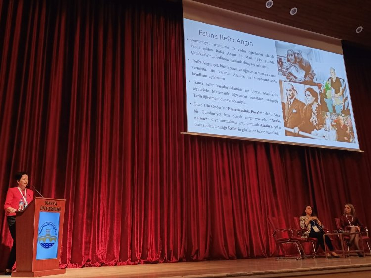 Akademisyenler ve öğrencilerin katıldığı panelde Necmettin Erbakan Üniversitesi Ahmet Keleşoğlu Eğitim Fakültesi Öğretim Üyesi Prof. Dr. Ayşe Mentiş Taş, “Cumhuriyet’in Kuruluşundan Günümüze Kadın Öğretmenler” konusunda sunum yaptı. Prof. Dr. Taş, sunumunda Fatma Refet Angın, Hatice Sökmen, Ayşe Sıdıka Avar, Vedide Baha Pars, Nimet Zerrin Tüzün ve Nazik Erik gibi Cumhuriyet’in kuruluş döneminde öğretmenlik yapan kadın öğretmenlerin hayatları ve mesleki çalışmalarından örnekler verdi.
