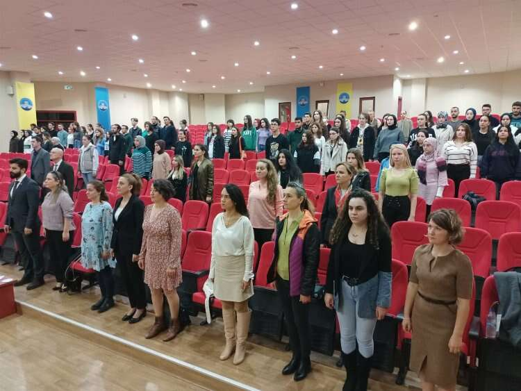 İktisadi ve İdari Bilimler Fakültesi Prof. Dr. Fehmi Yıldız Konferans Salonu’nda düzenlenen söyleşiye, Kadın ve Aile Çalışmaları Uygulama ve Araştırma Merkezi Müdürü Doç. Dr. Hatice Kahyaoğlu Süt, Kamu Yönetimi Bölümü Dr. Öğr. Üyesi Gökben Demirbaş, akademisyenler ve öğrenciler katıldı. Türkiye Cumhuriyeti’nin kurucusu Mustafa Kemal Atatürk, silah arkadaşları ve tüm şehitler anısına bir dakikalık saygı duruşu ve İstiklal Marşı’nın okunması ile başlayan söyleşinin moderatörlüğünü Doç. Dr. Süt yaparken; Dr. Öğr. Üyesi Demirbaş da Türkiye Cumhuriyeti siyasetinde kadın varlığının 100 yıllık seyri konulu sunum gerçekleştirdi.