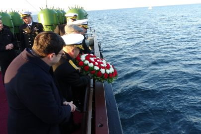 Konuşmanın ardından Vali Ömer Toraman, Amfibi Kolordu Komutanı Tümamiral Serhat Sözbir, Boğaz ve Garnizon Komutanı Tuğamiral Mustafa Biçen tarafından 110 yıl önce mayın bırakılan noktaya çelenk bıraktı. Tören toplu fotoğraf çekimiyle son buldu.