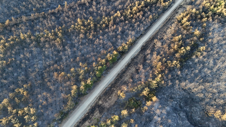 Öte yandan, AA ekibi yangında zarar gören ormanlık alanı dron ile görüntüledi.