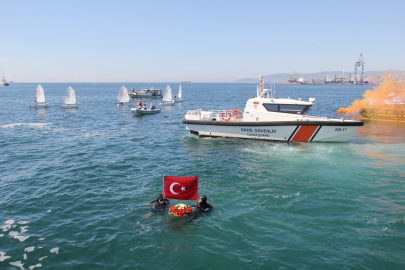 Süleymanpaşa Rumeli İskelesi'nde düzenlenen törende, Tekirdağ Valisi Recep Soytürk, şehitler anısına denize çelenk bıraktı.