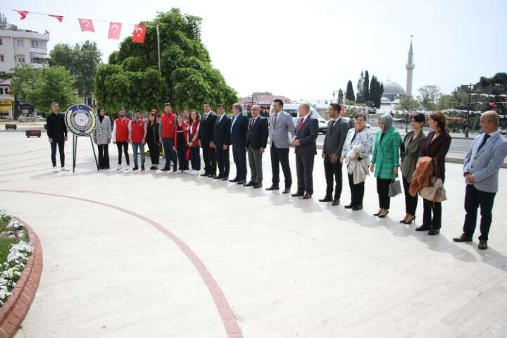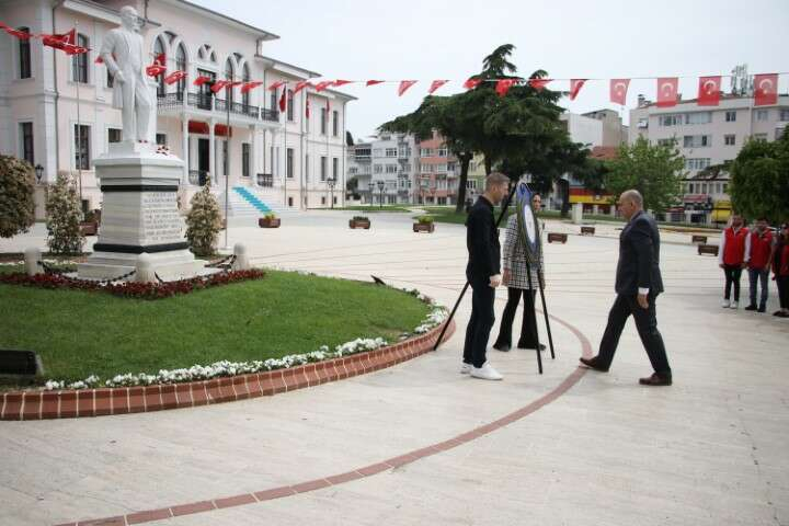 Tören, Valilik önünde bulunan Atatürk Anıtı'na Tekirdağ Gençlik Spor İl Müdürü Ahmet Üzgün'ün çelenk sunmasıyla başladı.