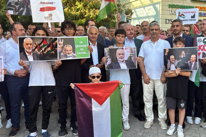 Sivil toplum örgütleri adına basın açıklamasını okuyan Adem Yaryıkan, "Bugün burada şehit İsmail Haniye'nin vasiyetini yerine getirmek, eylem çağrısına icabet etmek. Siyonizmi lanetleyip, tarihin en büyük imtihanını veren Gazzeli kardeşlerimizin sesi olmak için toplanmış bulunuyoruz. Siyonist İsrail rejimi 7 Ekim'den bu yana Gazze'de insanlık tarihinin en korkunç soykırımını gerçekleştiriyor. 40 bin kardeşimizi alçakça katletti. 100 binden fazla kardeşimiz de yaralı. Gazze şeridinde ayakta kalmış tek bir şehir, tek bir mahalle, insanların sığınabilecekleri tek bir güvenli nokta bile yok. Gazze'de daracık bir alana hapsedilmiş 3 milyon insan, bütün insanlığın sessiz bakışları arasında yaşanan soykırımda çaresizce sıranın kendilerine gelmesini bekliyor. Mazlum ve masumlar faşist ABD'nin, Siyonistlere verdiği silahlarla havadan, karadan ve denizden bombalanıyor. Ağızlarından insan hakları sözü düşmeyen İngiltere, Fransa, Almanya gibi ülkeler soykırıma açıkça destek veriyor. Siyonizm'in hizmetindeki batılı sermaye soykırımı finanse ediyor. Küresel medya sansür, çarpıtma, dezenformasyon ile soykırımı örtüyor ve vahşeti gizliyor" diye konuştu.