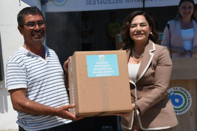 Tekne Bakım Projesi kapsamında hazırlanan koliler, Su Ürünleri Toptancı Hali'nde balıkçılara teslim edildi.