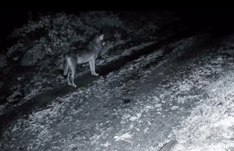 Fotokapan tarafından kaydedilen görüntülerde, bir kurt ve 2 karacanın orman içinde dolaştığı anlar yer aldı.