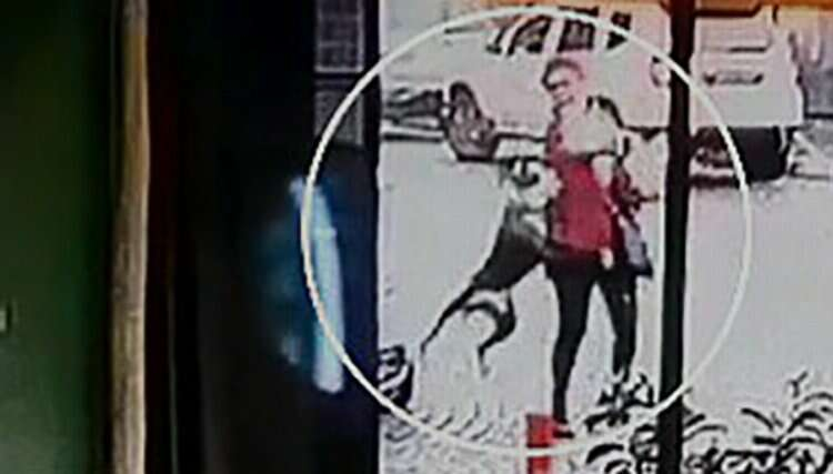 Kadın köpeğiyle yaralanırken, o anlar çevredeki güvenlik kameraları tarafından anbean kayıt altına alındı.