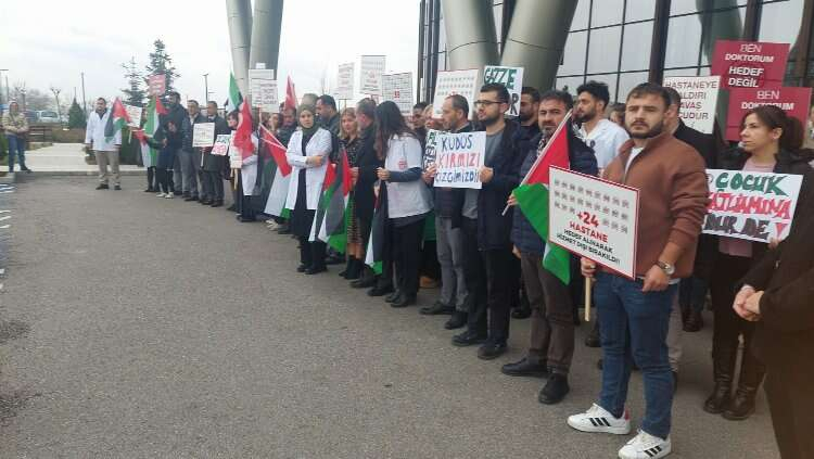 Daha sonra grup adına açıklamada bulunan Tıp Fakültesi 4. Sınıf öğrencisi Amine Ahsen Geldi, "Gazze'de 7 Ekim'den bu yana yaşananların soykırımdan başka kelimeyle açıklanamıyor. Bu katliam bütün dünyanın gözü önünde devam ederken gücü yetenler sessizce izlemektedir. İnsan hakları ve uluslararası hukuk ihlal edilerek binlerce insan katledildi. Ayrıca sağlık hizmetlerine ve tıbbi malzemelere de erişim engellendi. Bebeklerin dahi ölümüne neden olundu. Orada yaşananlara karşı mesleğimize yakışır bir duruş ortaya koymalıyız. Bu hafta sessiz yürüyüşümüzü 40'dan fazla ilde, yurt dışında da farklı şehirlerde düzenliyoruz. Bunu tüm dünyada yaygınlaştırmaya devam edeceğiz. Vicdan sahibi herkesi harekete geçmeye bu onurlu yürüyüşte yer olarak bu onurlu yürüyüş kervanımızda ses olmaya davet ediyoruz" diye konuştu.