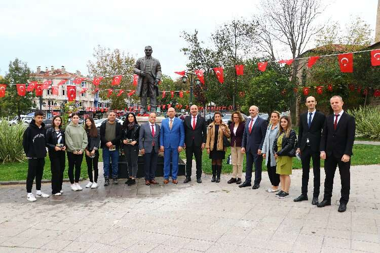 İl Kültür ve Turizm Müdürü Ahmet Hacıoğlu, İl Gençlik ve Spor Müdürü Ahmet Üzgün, Tekirdağ Namık Kemal Kütüphanesi Müdürü Hamide Çakır ile Yahya Kemal Beyatlı Güzel Sanatlar Lisesi öğrencileri, Beyatlı'nın kent merkezindeki heykeline karanfil bıraktı.
