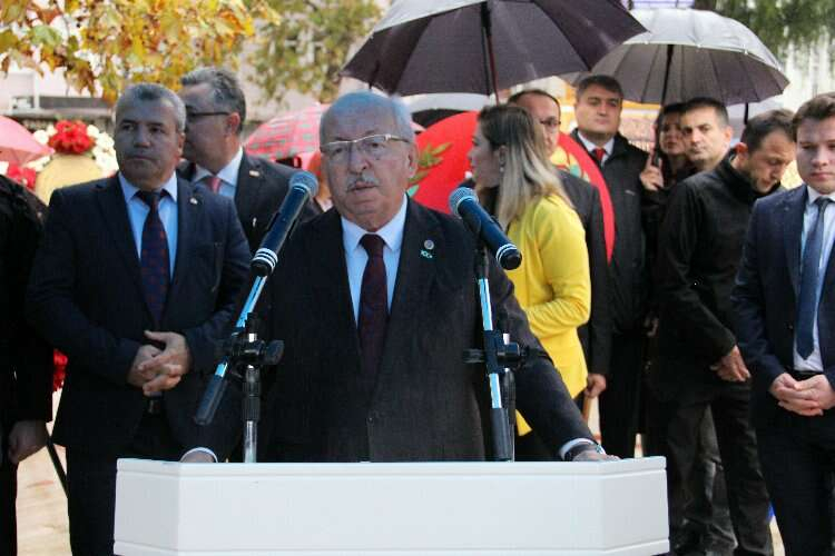 Valilik binası önündeki törende, Tekirdağ Valisi Recep Soytürk, Garnizon Komutanı Tuğgeneral Ahmet Uğurlu ve Büyükşehir Belediye Başkanı Kadir Albayrak, Atatürk Anıtı'na çelenk sundu.